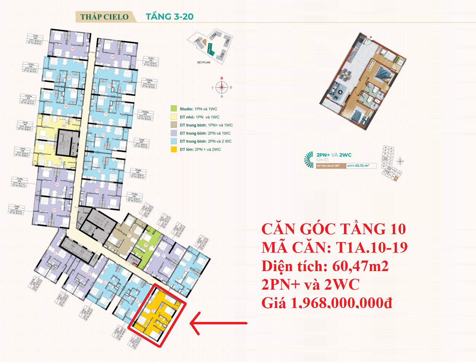 Mặt bằng chi tiết tầng 3-20 Cielo